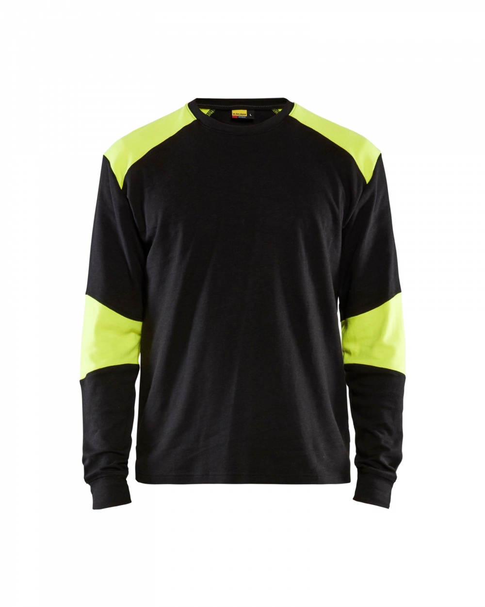 Langermet t-skjorte i kraftig kvalitet med høy beskyttelsesverdi og varsel klasse 1.